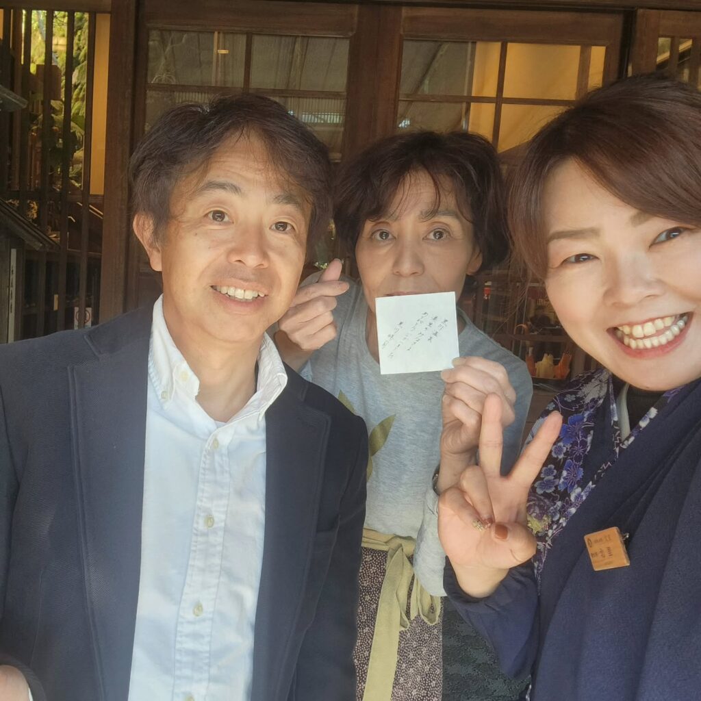 2024/10/06 #黒川温泉感謝祭 お天気もなんとか雨も降らず、無事に終わりました~ご宿泊のお客様も思いの外お祭りに参加できて楽しかったと喜んでおられました美里の若女将、ふもと旅館の若女将、やまびこ旅館の若女将、わかば旅館の若女将、湯本荘の若女将5名で学園天国の歌を歌わせていただきました~唱のadoも私(若女将)が歌わせていただきましたが、一緒に歌ってた方は、仮面をしていたので誰かわからなかったですよね🤣地元の病院の先生だったんです(笑)他にも旅館の息子、肉屋さんの息子さん、建設会社の社長、プロカメラマン、旅館組合の事務員さんなど、いろんな職業の方がこの日のために練習に励んできました最後のオオトリはなんと!南小国町の町長だったんです(笑)南小国町の明るく元気な町はこの明るい町長のおかげです部活のような練習の日々に、どこか懐かしく、お客様や観客の皆様に楽しんでいただきたいという思い、盛り上げたいという思いで、みんなて1つのことを成し遂げることは、仕事も同じだなぁと感じつつ、私たち自身も楽しむことができました~お泊まりのお客様からも、あたたかいお声をいただき、楽しかったです上手でした盛り上がりましたね~などとチェックアウトのときにお声がけいただき、とても嬉しかったです夜な夜な練習したかいがありました~美里の専務(若旦那)は、 #黒川温泉感謝祭 お天気もなんとか雨も降らず、無事に終わりました~ご宿泊のお客様も思いの外お祭りに参加できて楽しかったと喜んでおられました美里の若女将、ふもと旅館の若女将、やまびこ旅館の若女将、わかば旅館の若女将、湯本荘 […] MORE